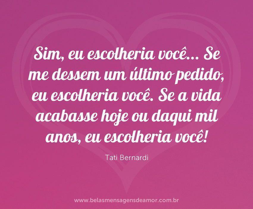 Sim, eu escolheria você… Se me dessem um último pedido, eu escolheria você. Se a vida acabasse hoje ou daqui mil anos, eu escolheria você!