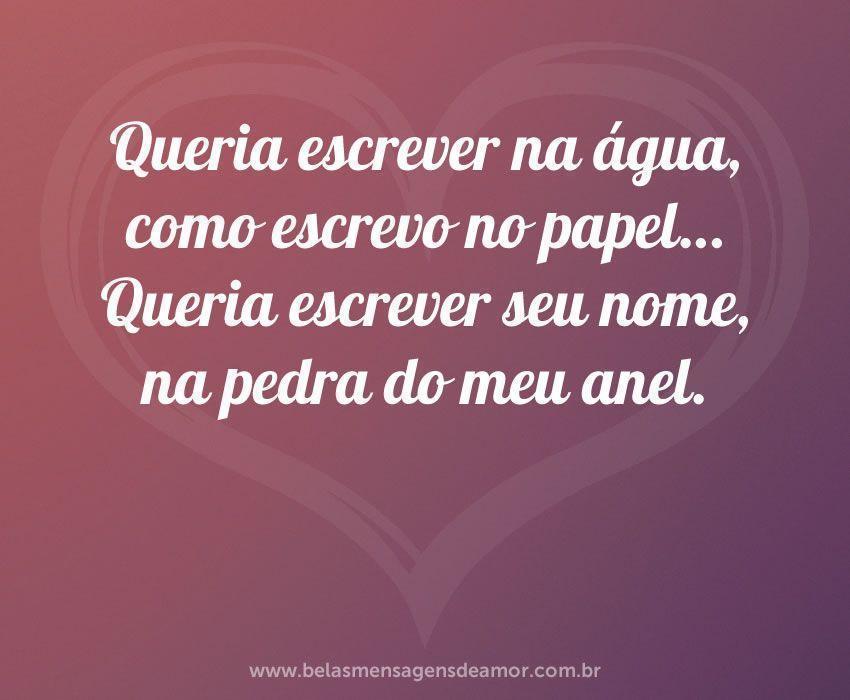 Queria escrever na água, como escrevo no papel… Queria escrever seu nome, na pedra do meu anel.